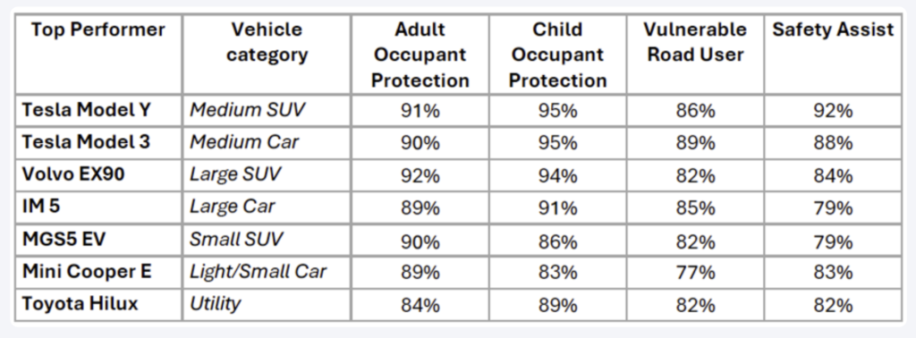 The Tesla Model Y and Model 3 have been identified as the safest vehicles following testing conducted by ANCAP in 2025.